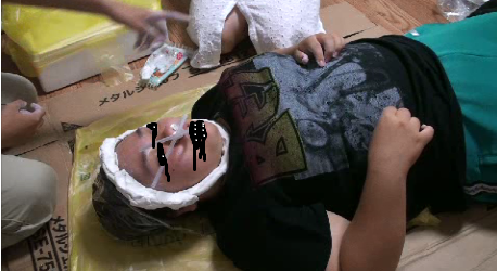 鼻につめてたティッシュがリアルです。